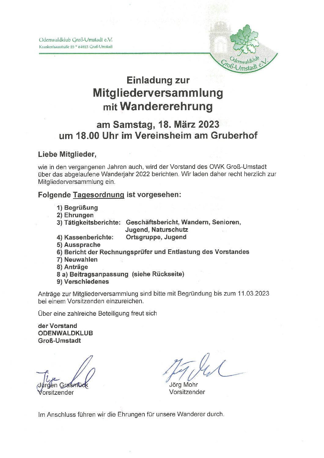 Mitgliederversammlung & Wandererehrung