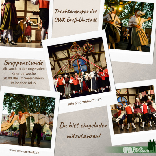 Die Trachtengruppe trifft sich regelmäßig im Vereinsheim. Es wird getanzt, aber auch Projekte und Veranstaltungen werden vorbereitet und durchgeführt wie beispielsweise Zeltlager, Winzerfest und Weinproben.